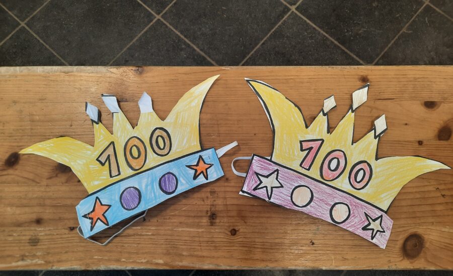 Seit Tag 1 zählt die Waschbärklasse die Schultage. Am Donnerstag war es dann endlich soweit. 100 Tage sind wir nun in der Schule. Das musste mit einer kleinen Party gefeiert werden. Außerdem legten