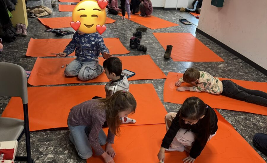 Heute hat die Hundeklasse, gemeinsam mit Frau Scholich, ein Abbild vom eigenen Körper auf Tapete angefertigt. Die Figuren wurden sehr konzentriert perfektioniert und im Flur aufgehangen.