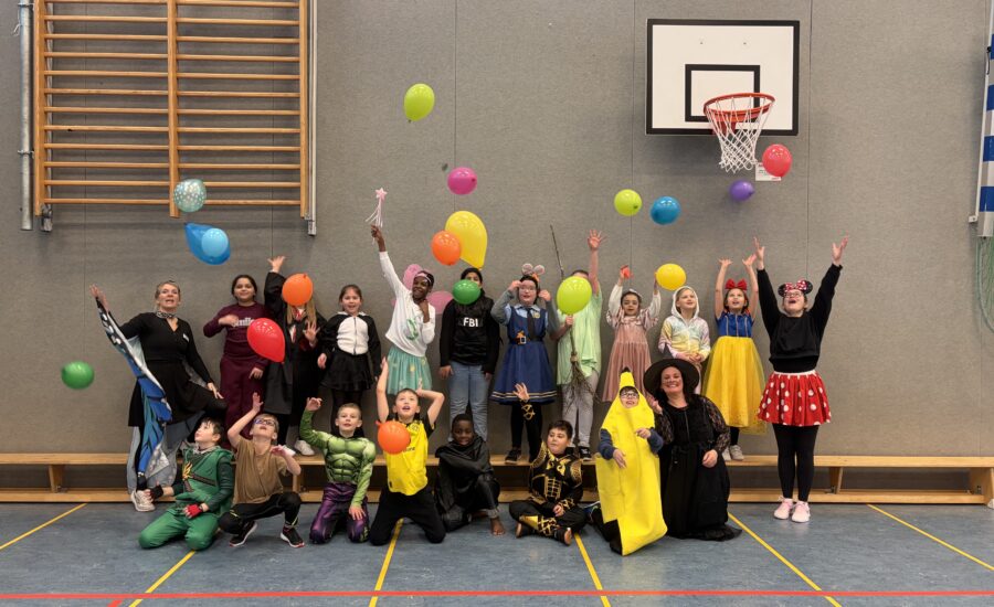 In der Erdmännchenklasse wurde fröhlich Karneval gefeiert. In der Turnhalle gab es lustige Spiele und Tänze, bei denen alle Kinder begeistert mitmachten. Ein buntes Buffet mit vielen Leckereien sorgte für neue Energie. Ein
